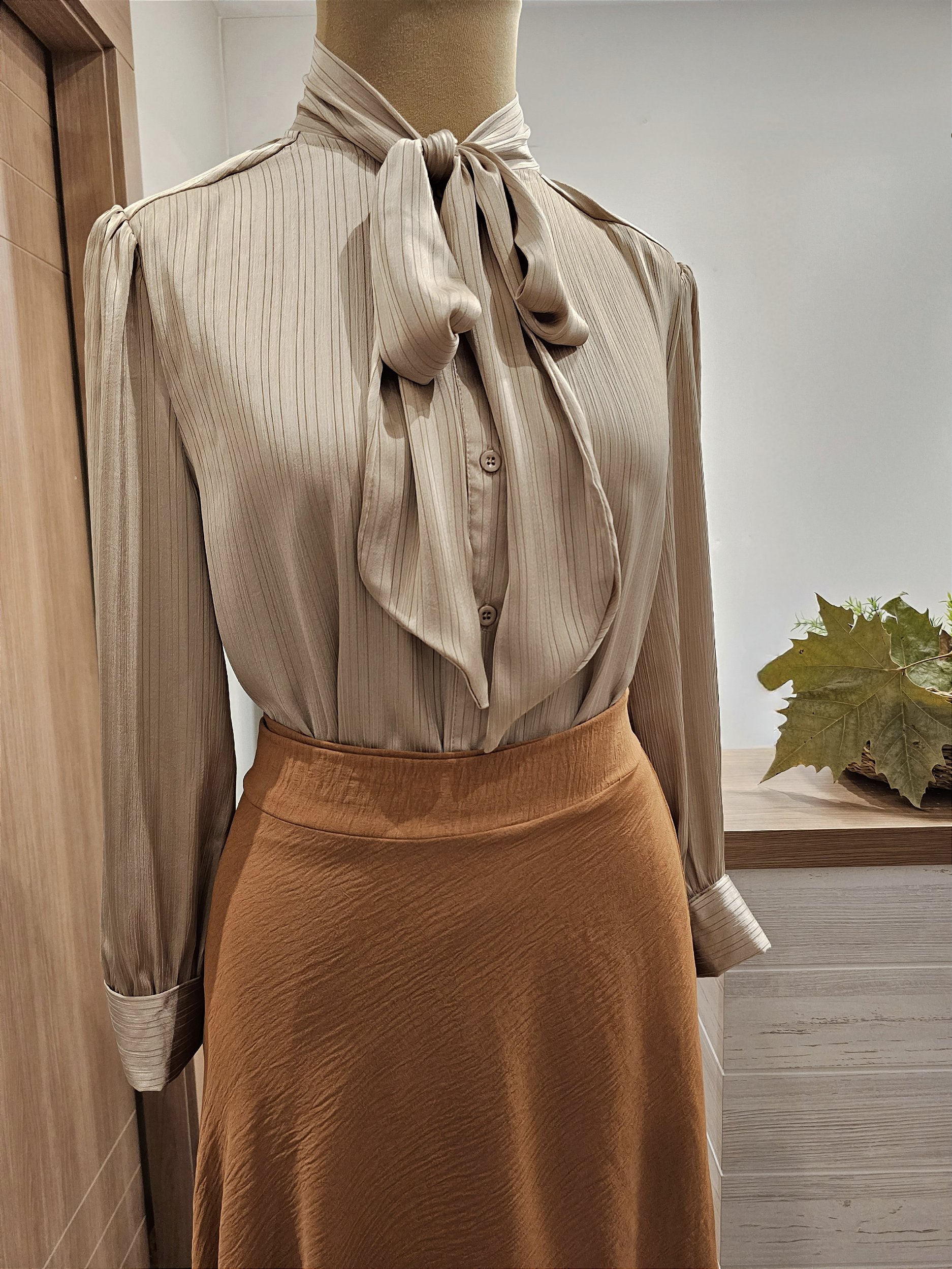 Camisa muito charmosa, em tecido seda macia, modelagem confortável e elegante, com gola laço!