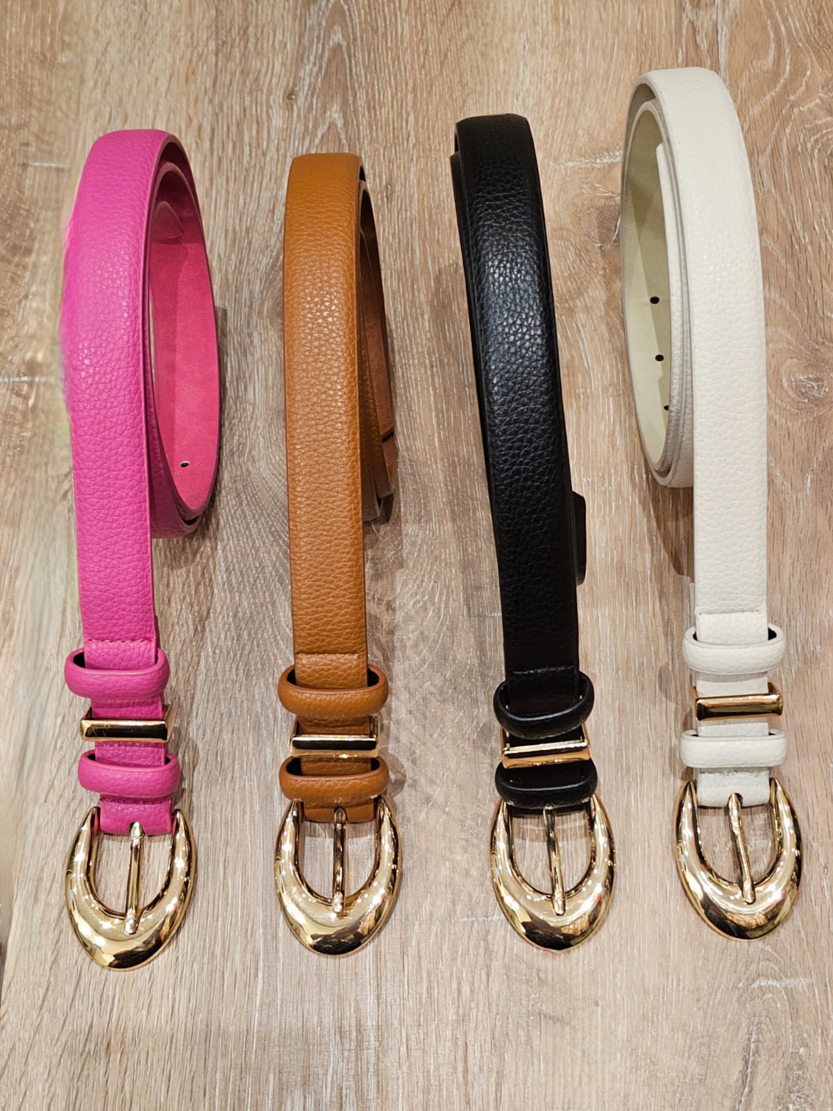 As cores são versáteis, com fivela dourada e um toque de charme.