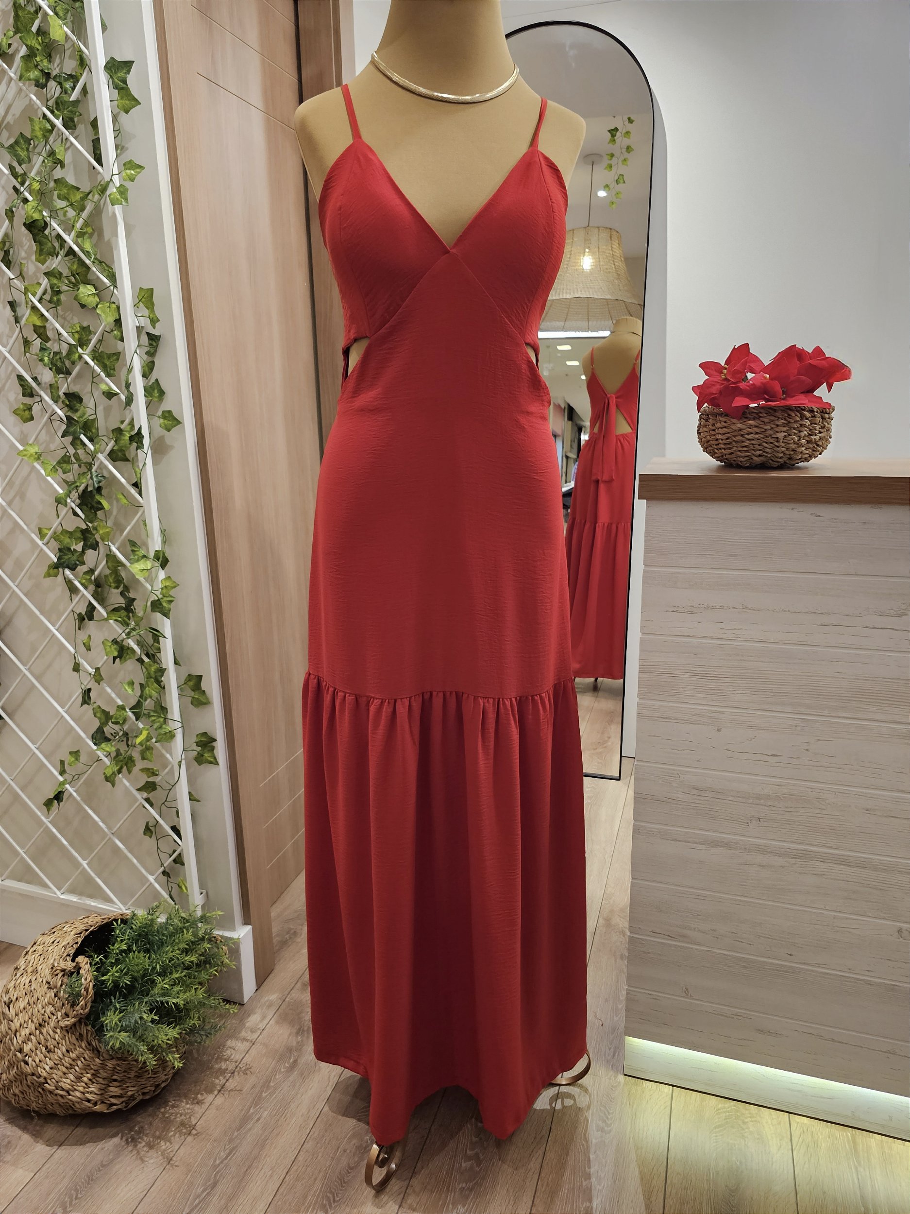 Vestido longo festa, confeccionado em tecido crepe duna. É macio, toque suave e não amassa.